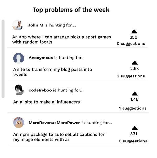 Post real painpoints you are facing that could be fixed with SaaS.Vote on problems you identify with that you would also like solved.