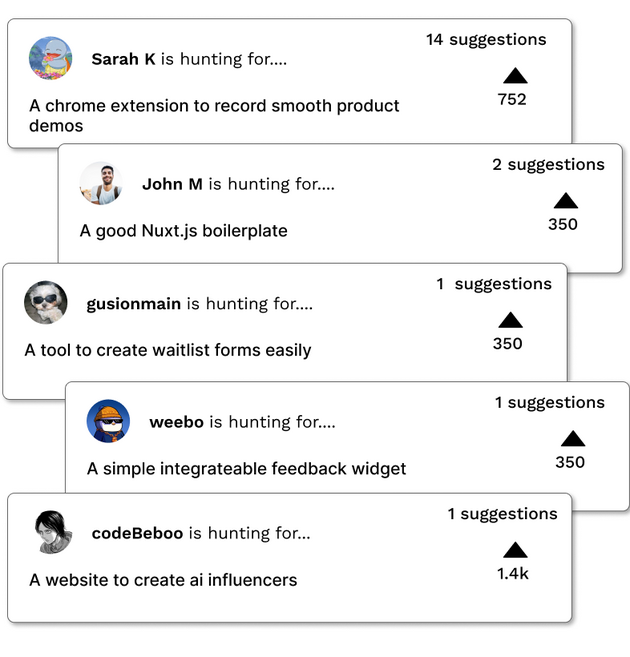 Suggest your own or other tools that could solve a user's problems.Vote on the best solutions for a user's problems.